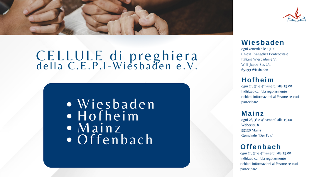 Cambiamenti attuali rispetto ai nostri culti regolari e le nostre attività le trovate sulla nostra pagina Facebook